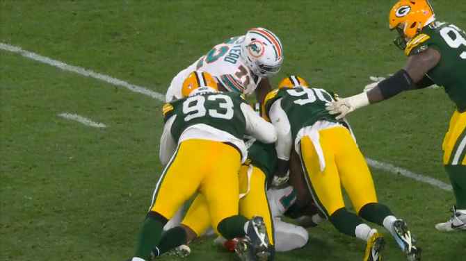 Tua Tagovailoa makes a meal on a fourth down and is sacked as the Dolphins turn it around against the Packers.