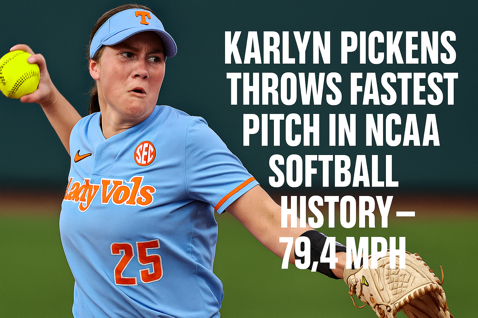 Tennessee softball sensation Karlyn Pickens just made history during the 2025 NCAA Super Regionals. In a high-stakes game against Nebraska, Pickens delivered the fastest pitch ever recorded in NCAA Division I softball — an astonishing 79.4 miles per hour. This pitch shattered her own previous record of 78.2 mph and solidified her status as one of the most dominant pitchers in college softball history.