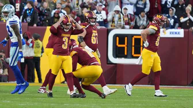 How the heck did the Cowboys pull that off? The Cowboys entered the game with more than $100 million in salary cap space on injured reserve in Dak Prescott, DeMarcus Lawrence, Zack Martin, Trevon Diggs and Brandin Cooks. Their best offensive lineman, Tyler Smith (ankle), was also ruled out Sunday. They overcame two missed field goal attempts, a deflected punt, a penalty on a kickoff and iced the game on a pair of kickoff returns by KaVontae Turpin (99 yards) and Juanyeh Thomas (43 yards) after Washington nearly pulled off its second miracle of the season.