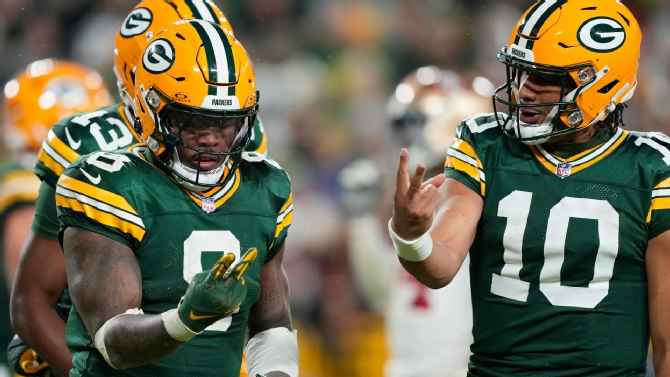 What kind of shape will the Packers be in for Thursday night? There’s reason to be concerned given they play the Dolphins in four days. Running back Josh Jacobs made a significant impact (26 carries, 103 yards, three touchdowns), but he had to leave briefly to be treated for cramps. They lost receiver Romeo Doubs (three catches, 54 yards) to a concussion, and it would be difficult for him to clear protocol for the Miami game. The Packers aren’t likely to have cornerback Jaire Alexander (knee) or linebacker Edgerrin Cooper (hamstring), either.