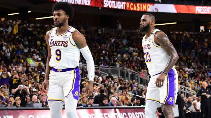 LeBron James and Bronny James hurry the ground in combination for the Lakers in a preseason match in opposition to the Suns.