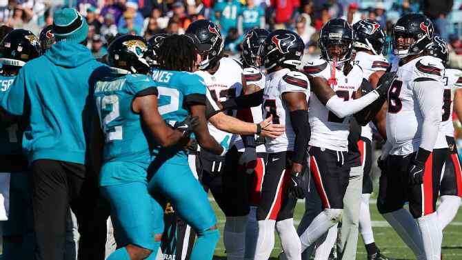 Tensions boil over when the Texans’ Azeez Al-Shaair is ejected for a late hit on a sliding Trevor Lawrence, who has to be removed after the play.